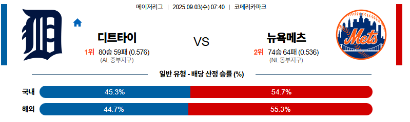 디트로이트 대 뉴욕메츠 MLB 09월03일 맞대결 생중계, 스포츠중계, 스포츠분석