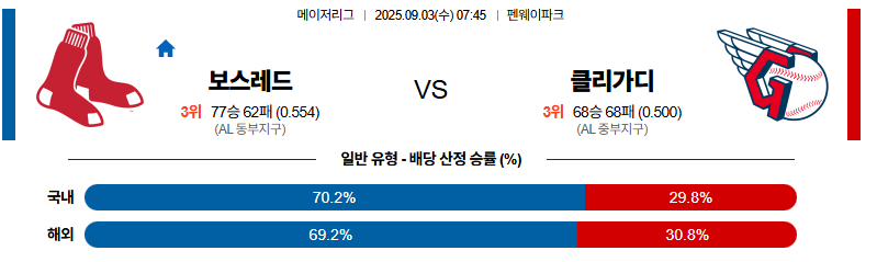 보스턴 대 클리블랜드 MLB 09월03일 맞대결 생중계, 스포츠중계, 스포츠분석