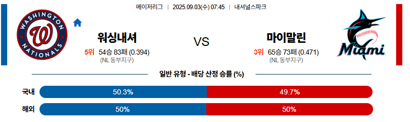 워싱턴 대 마이애미 MLB 09월03일 맞대결 생중계, 스포츠중계, 스포츠분석