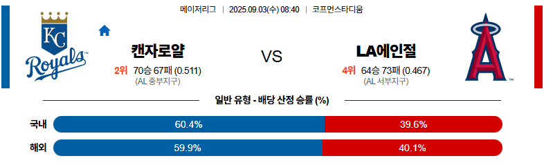 캔자스시티 대 LA에인절스 MLB 09월03일 맞대결 생중계, 스포츠중계, 스포츠분석