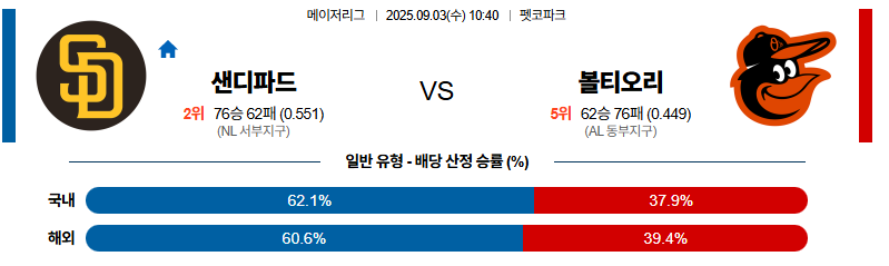 샌디에이고 대 볼티모어 MLB 09월03일 맞대결 생중계, 스포츠중계, 스포츠분석