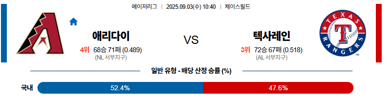 애리조나 대 텍사스 MLB 09월03일 맞대결 생중계, 스포츠중계, 스포츠분석