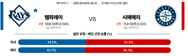 탬파베이 대 시애틀 MLB 09월04일 맞대결 생중계, 스포츠중계, 스포츠분석