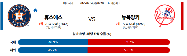 휴스턴 대 뉴욕양키스 MLB 09월04일 맞대결 생중계, 스포츠중계, 스포츠분석