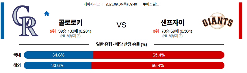 콜로라도 대 샌프란시스코 MLB 09월04일 맞대결 생중계, 스포츠중계, 스포츠분석