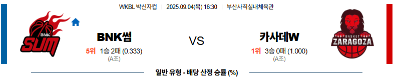 BNK썸 대 카사데몬트사라고사 박신자컵 09월04일 맞대결 생중계, 스포츠중계, 스포츠분석