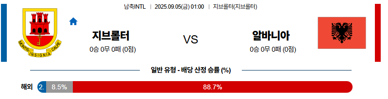 지브롤터 대 알바니아 남축INTL 09월05일 맞대결 생중계, 스포츠중계, 스포츠분석