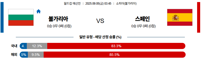 불가리아 대 스페인 월드컵예선전 09월05일 맞대결 생중계, 스포츠중계, 스포츠분석
