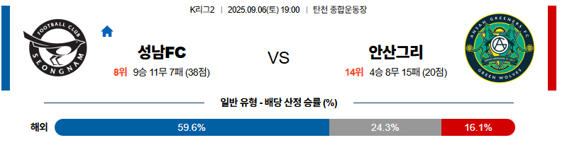 성남 대 안산 K리그2 09월06일 맞대결 생중계, 스포츠중계, 스포츠분석