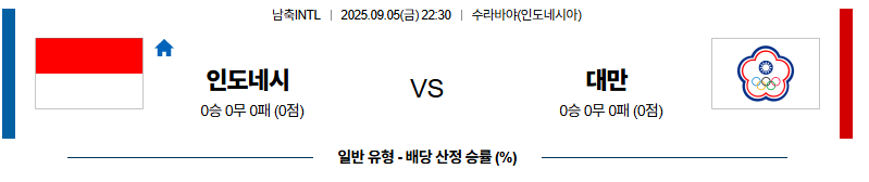 인도네시아 대 대만 남축INTL 09월05일 맞대결 생중계, 스포츠중계, 스포츠분석
