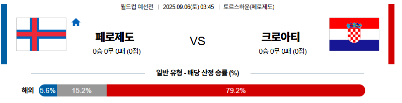 페로제도 대 크로아티아 월드컵예선전 09월06일 맞대결 생중계, 스포츠중계, 스포츠분석