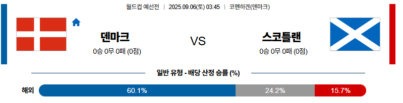 덴마크 대 스코틀랜드 월드컵예선전 09월06일 맞대결 생중계, 스포츠중계, 스포츠분석