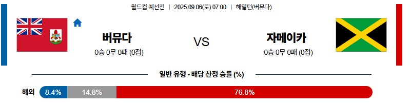 버뮤다 대 자메이카 월드컵예선전 09월06일 맞대결 생중계, 스포츠중계, 스포츠분석