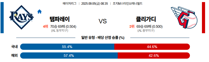 탬파베이 대 클리블랜드 MLB 09월05일 맞대결 생중계, 스포츠중계, 스포츠분석
