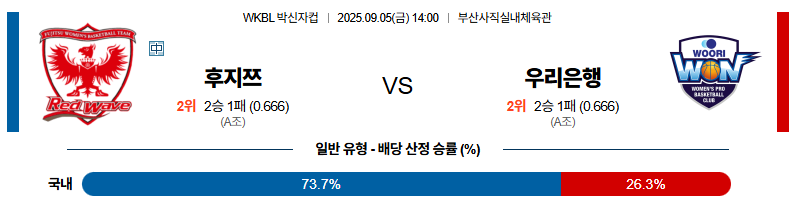 후지쓰레드웨이브 대 우리은행 박신자컵 09월05일 맞대결 생중계, 스포츠중계, 스포츠분석