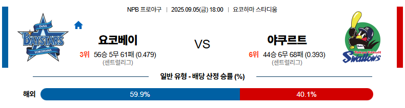 요코하마 대 야쿠르트 NPB 09월05일 맞대결 생중계, 스포츠중계, 스포츠분석