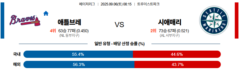 애틀랜타 대 시애틀 MLB 09월06일 맞대결 생중계, 스포츠중계, 스포츠분석