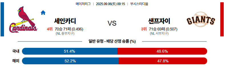 세인트루이스 대 샌프란시스코 MLB 09월06일 맞대결 생중계, 스포츠중계, 스포츠분석