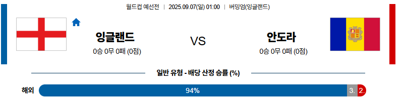 잉글랜드 대 안도라 월드컵예선전 09월07일 맞대결 생중계, 스포츠중계, 스포츠분석