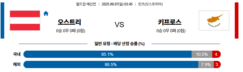 오스트리아 대 키프러스 월드컵예선전 09월07일 맞대결 생중계, 스포츠중계, 스포츠분석