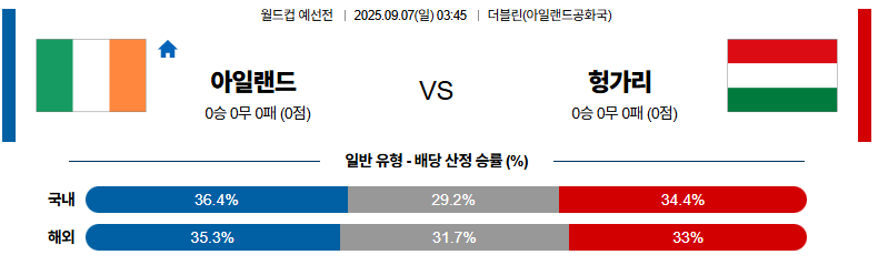 아일랜드 대 헝가리 월드컵예선전 09월07일 맞대결 생중계, 스포츠중계, 스포츠분석