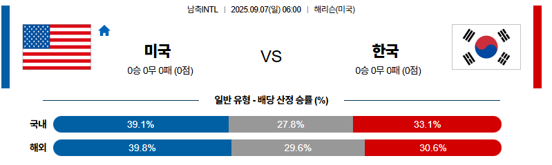 미국 대 대한민국 남축INTL 09월07일 맞대결 생중계, 스포츠중계, 스포츠분석