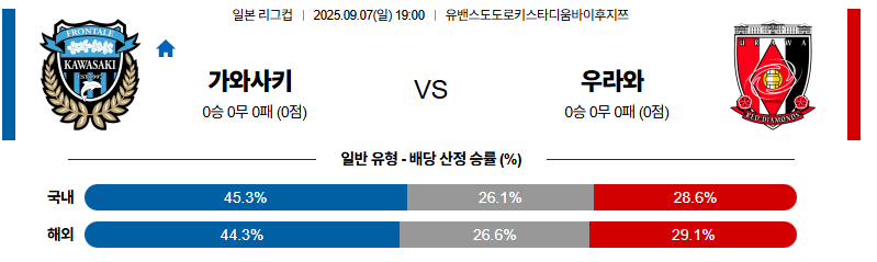 가와사키 대 우라와 J리그컵 09월07일 맞대결 생중계, 스포츠중계, 스포츠분석