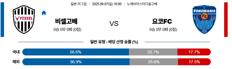 비셀고베 대 요코하마FC J리그컵 09월07일 맞대결 생중계, 스포츠중계, 스포츠분석