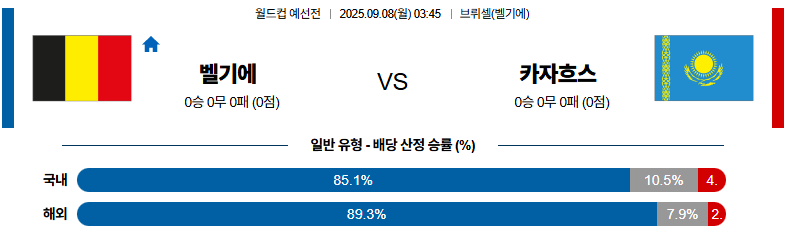 벨기에 대 카자흐스탄 월드컵예선전 09월08일 맞대결 생중계, 스포츠중계, 스포츠분석