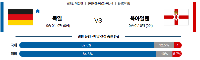 독일은 최근 A매치에서 보여준 대담한 공격 전개와 측면 침투 패턴으로 북아일랜드를 흔들 가능성이 높습니다. 북아일랜드는 쓰리백 수비를 바탕으로 버티려 하겠지만, 순간적인 속도전과 공간 관리에서 약점을 드러낼 수밖에 없습니다. 결국 독일이 폭넓은 공격 루트와 선수 개인 능력으로 승리를 완성할 가능성이 큽니다.