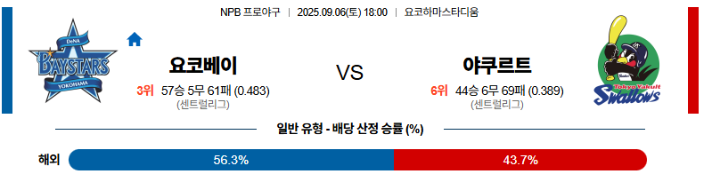 요코하마 대 야쿠르트 NPB 09월06일 맞대결 생중계, 스포츠중계, 스포츠분석