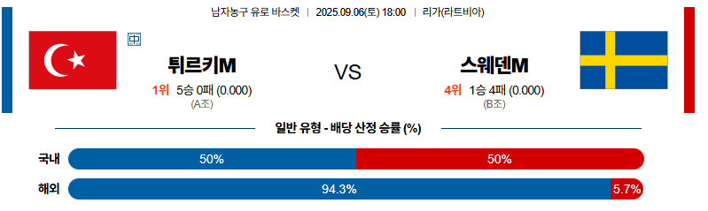 튀르키예 대 스웨덴 유로바스켓 09월06일 맞대결 생중계, 스포츠중계, 스포츠분석