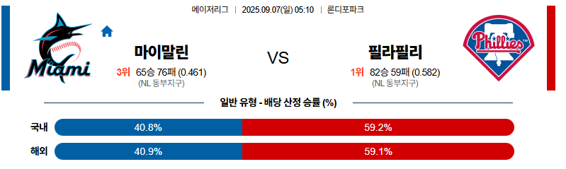 마이애미 대 필라델피아 MLB 09월07일 맞대결 생중계, 스포츠중계, 스포츠분석