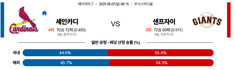세인트루이스 대 샌프란시스코 MLB 09월07일 맞대결 생중계, 스포츠중계, 스포츠분석