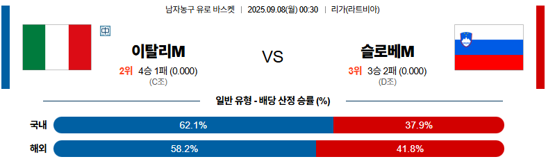 이탈리아 대 슬로베니아 유로바스켓 09월08일 맞대결 생중계, 스포츠중계, 스포츠분석