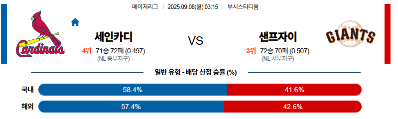 세인트루이스 대 샌프란시스코 MLB 09월08일 맞대결 생중계, 스포츠중계, 스포츠분석