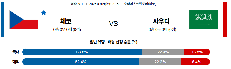 체코 대 사우디아라비아 남축INTL 09월09일 맞대결 생중계, 스포츠중계, 스포츠분석