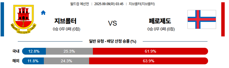지브롤터 대 페로제도 월드컵예선전 09월09일 맞대결 생중계, 스포츠중계, 스포츠분석