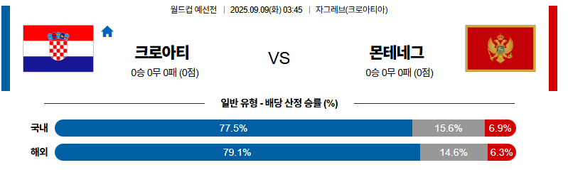 크로아티아 대 몬테네그로 월드컵예선전 09월09일 맞대결 생중계, 스포츠중계, 스포츠분석