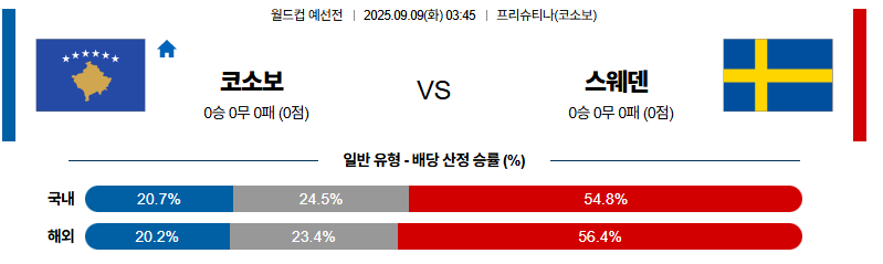 코소보 대 스웨덴 월드컵예선전 09월09일 맞대결 생중계, 스포츠중계, 스포츠분석
