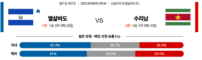 엘살바도르 대 수리남 월드컵예선전 09월09일 맞대결 생중계, 스포츠중계, 스포츠분석