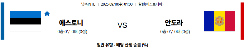 에스토니아 대 안도라 남축INTL 09월10일 맞대결 생중계, 스포츠중계, 스포츠분석