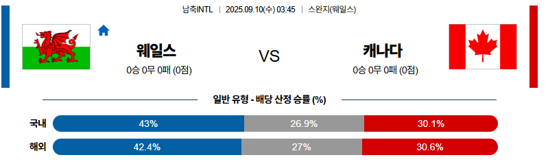 웨일스 대 캐나다 남축INTL 09월10일 맞대결 생중계, 스포츠중계, 스포츠분석