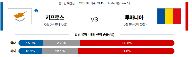 키프로스 대 루마니아 월드컵예선전 09월10일 맞대결 생중계, 스포츠중계, 스포츠분석