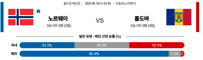 노르웨이 대 몰도바 월드컵예선전 09월10일 맞대결 생중계, 스포츠중계, 스포츠분석
