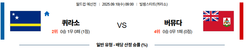퀴라소 대 버뮤다 월드컵예선전 09월10일 맞대결 생중계, 스포츠중계, 스포츠분석