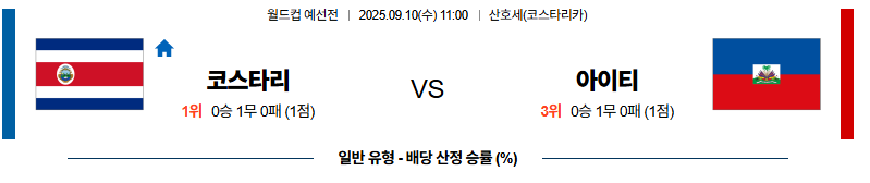 코스타리카 대 아이티 월드컵예선전 09월10일 맞대결 생중계, 스포츠중계, 스포츠분석