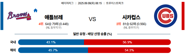 애틀랜타 대 시카고컵스 MLB 09월09일 맞대결 생중계, 스포츠중계, 스포츠분석