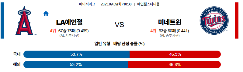 LA에인절스 대 미네소타 MLB 09월09일 맞대결 생중계, 스포츠중계, 스포츠분석