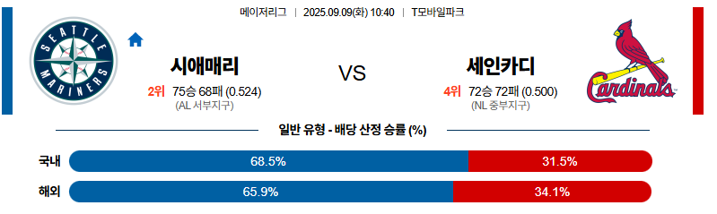 시애틀 대 세인트루이스 MLB 09월09일 맞대결 생중계, 스포츠중계, 스포츠분석